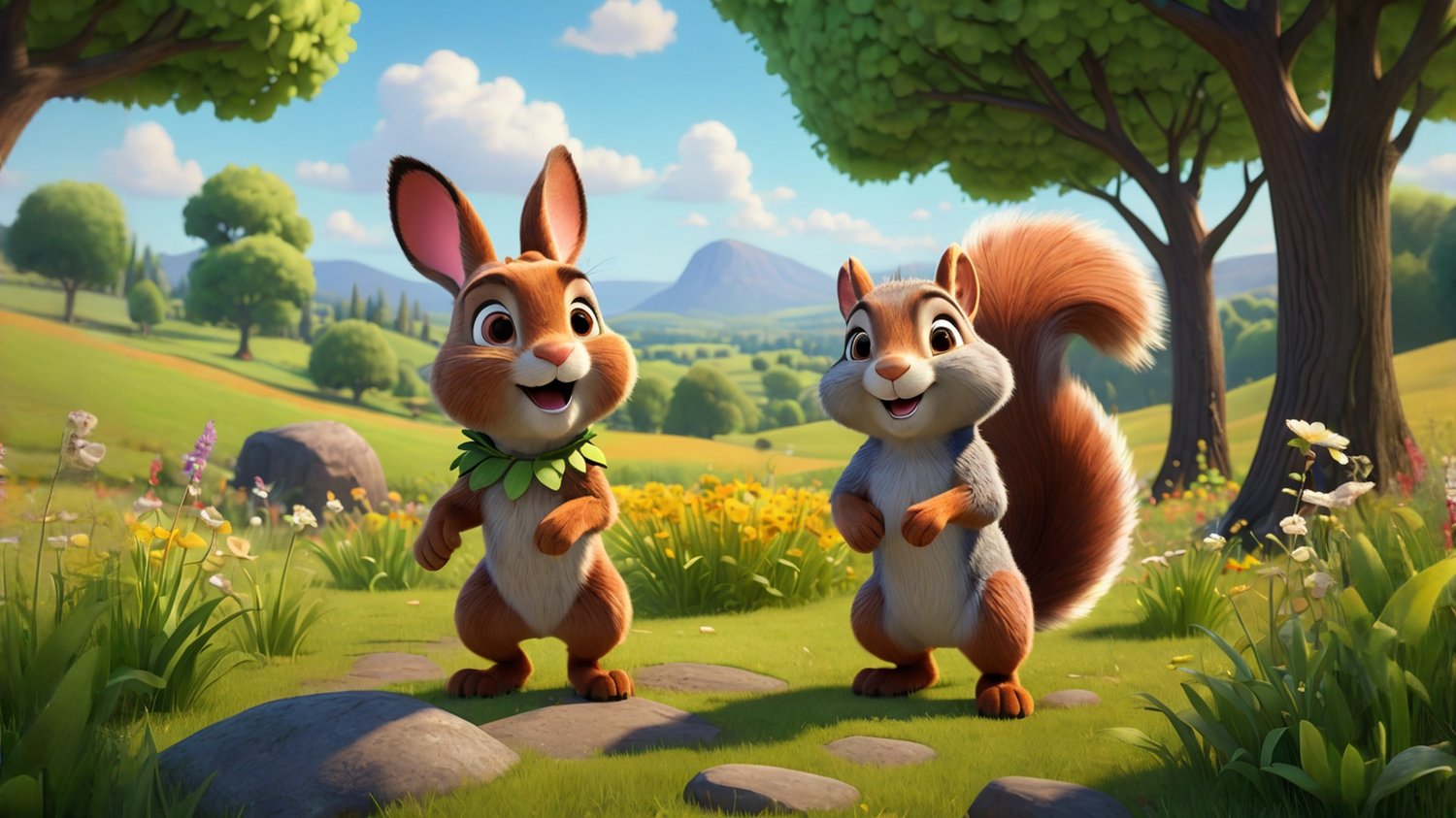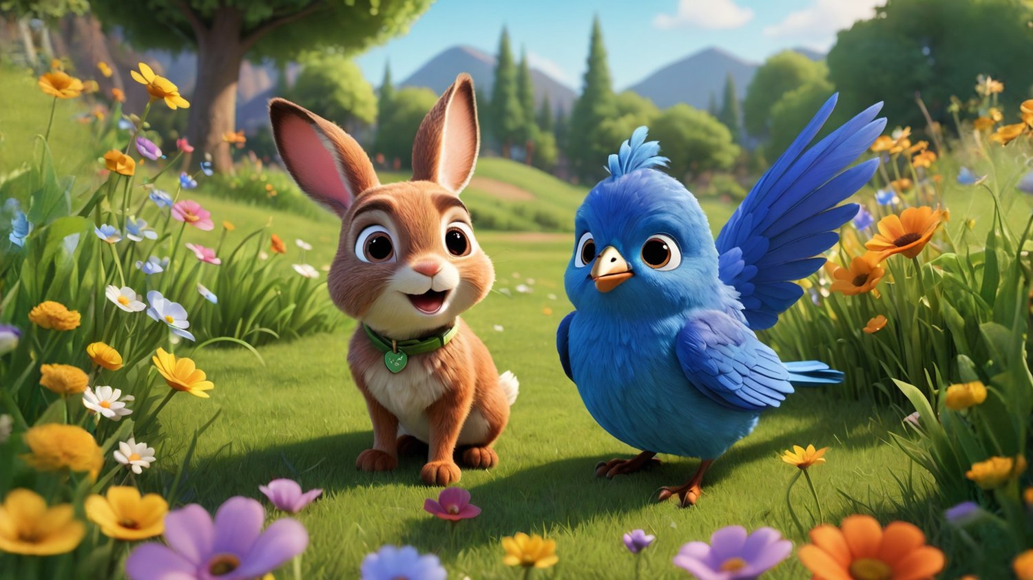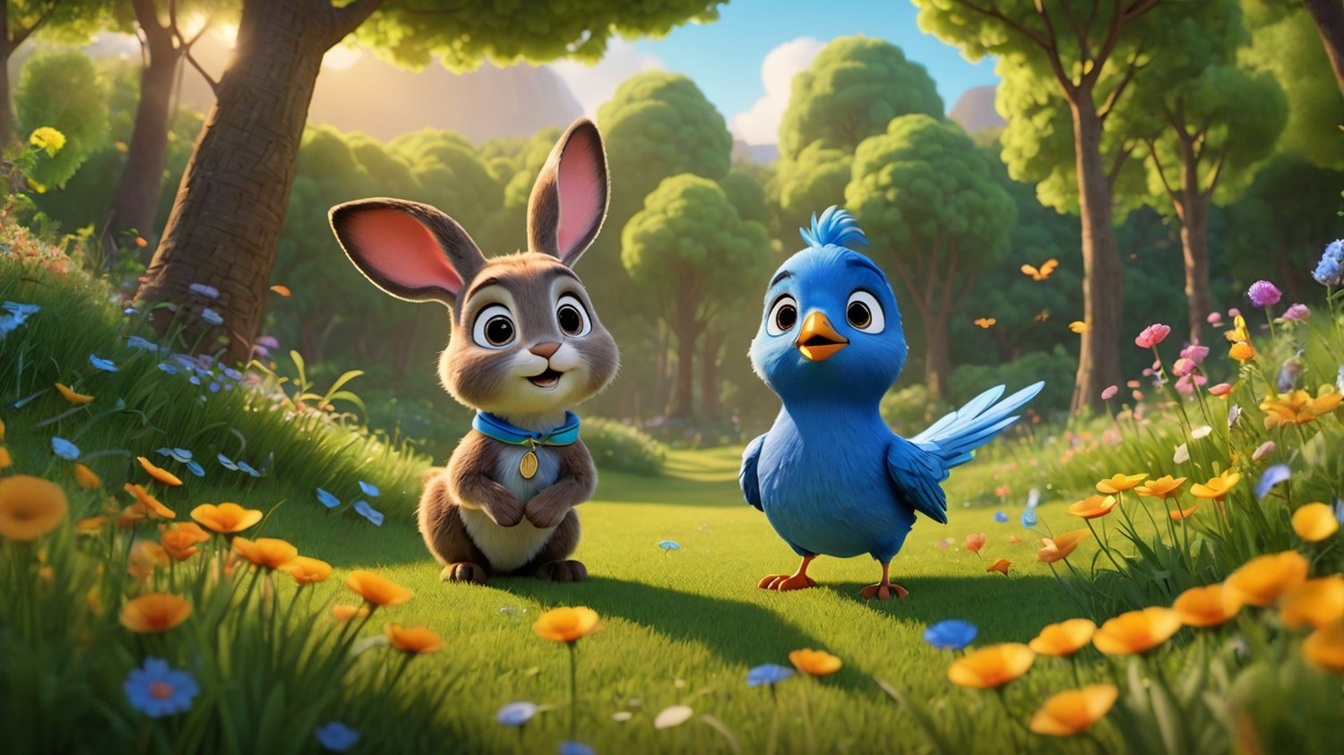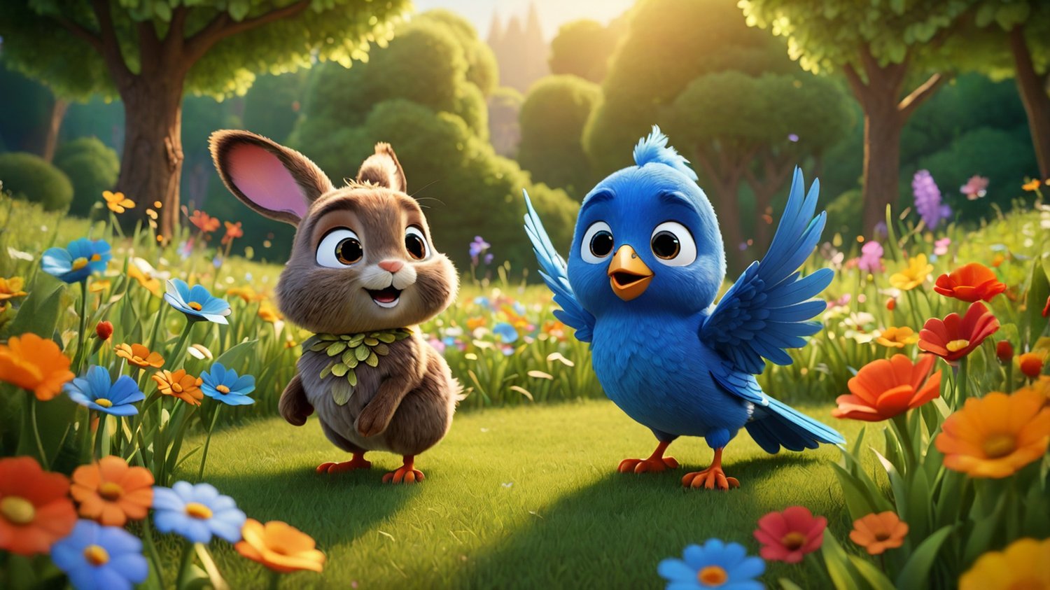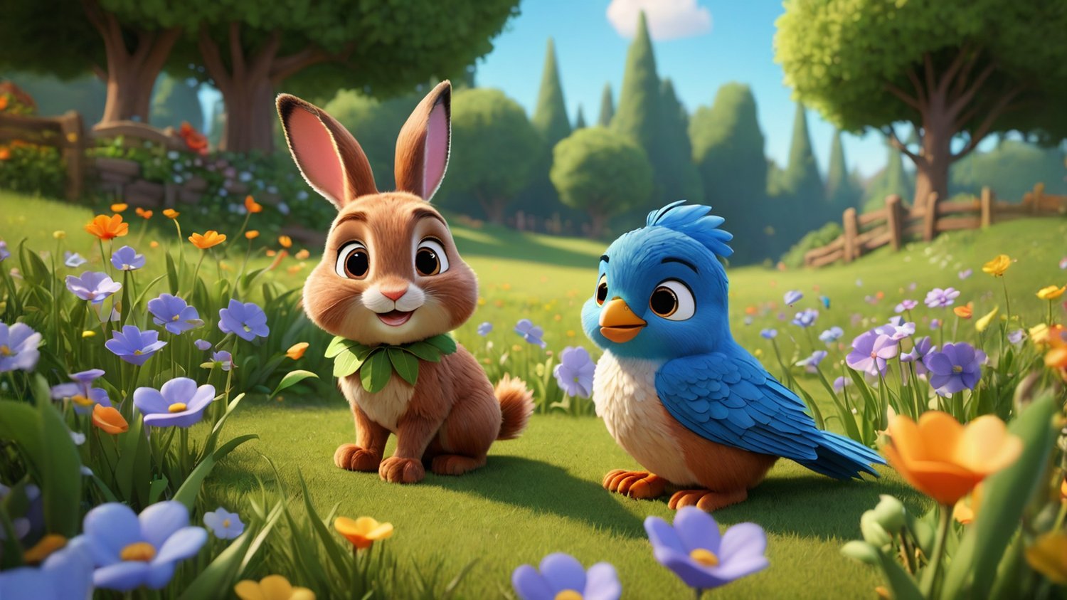 In a sunny meadow, a curious rabbit named Oliver discovers a small blue bird with a hurt wing. Determined to help, he brings the bird to his burrow and seeks advice from his wise friend, Hazel the squirrel. Together, they find a healing herb and nurse the bird back to health. As the bird prepares for its first flight, Oliver's kindness shines, earning him the title of the meadow's kindest rabbit, where friendship and compassion flourish.